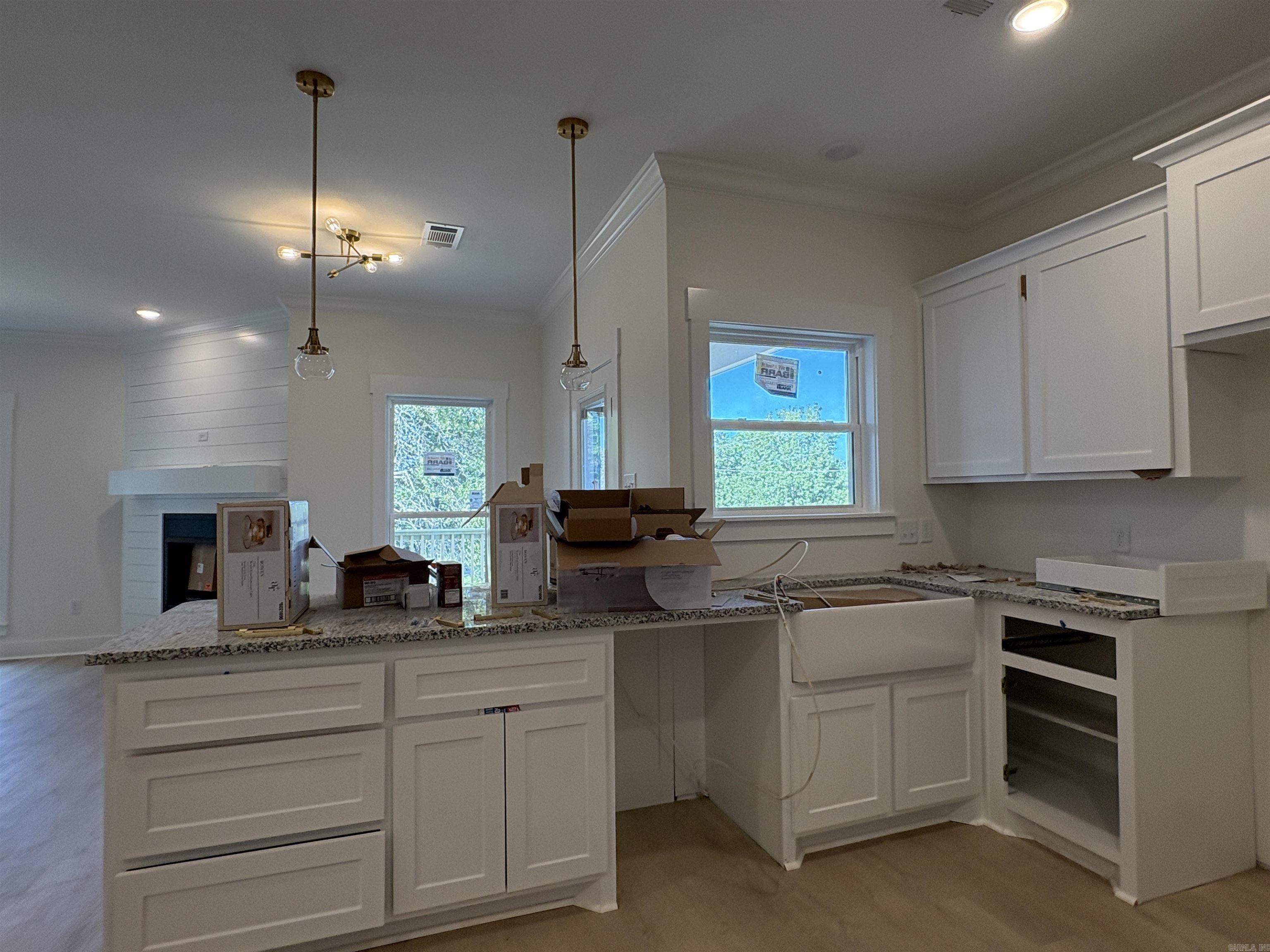 New construction. Very energy efficient. Open floor plan with custom finishes. Corner fireplace in the great room. Eat in kitchen with stainless appliances. Granite thru out. Master bath with soaker tub and walk in shower. Large bedrooms plus an OFFICE. LVP flooring. Laundry room. Nice covered back porch. Over 1/2 acre corner lot. Agents see Docs and Agent Remarks.