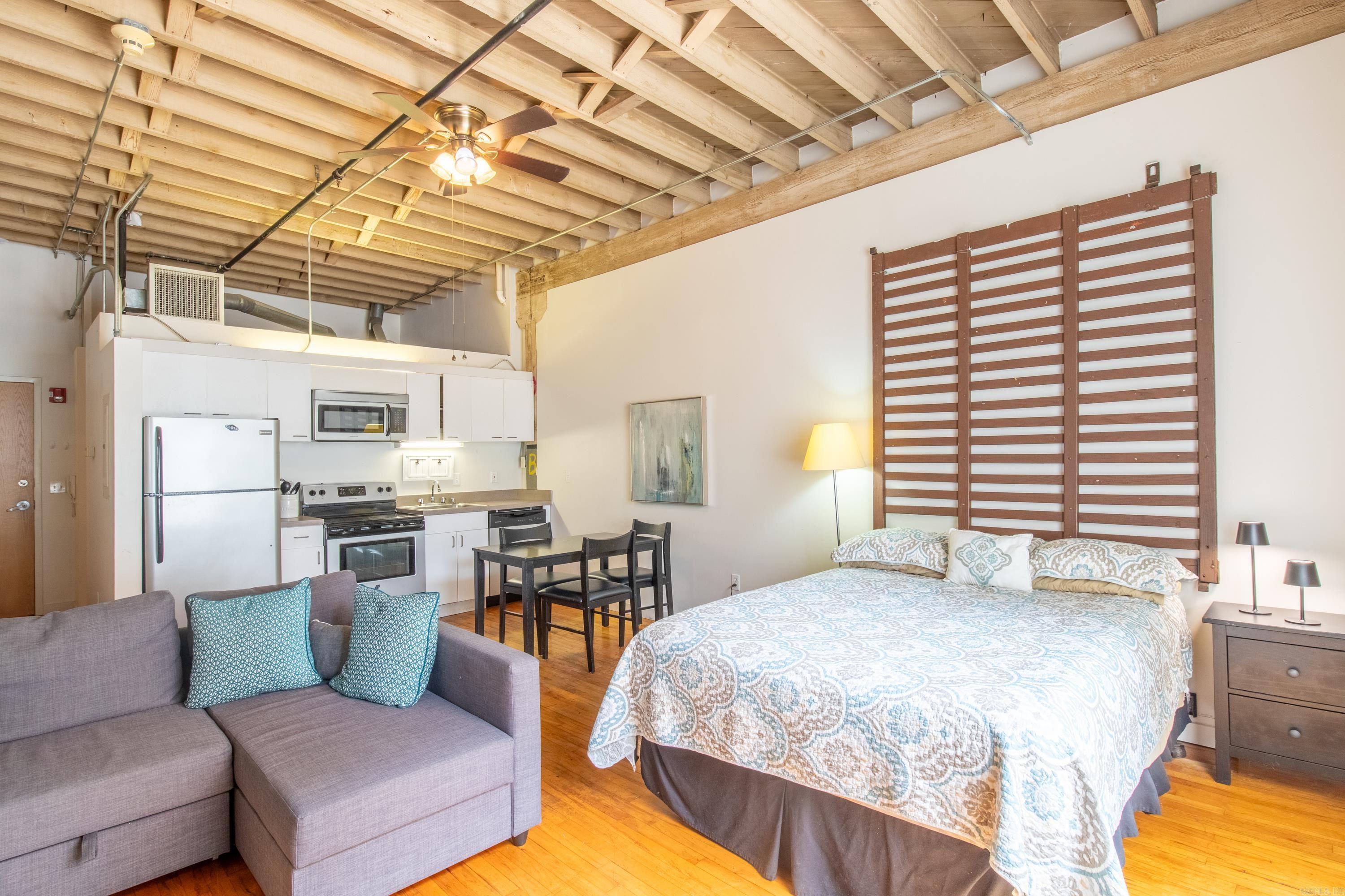 AVAILABLE FOR THE FIRST TIME! Step into the vibrant energy of downtown living with this rare opportunity to own a piece of Little Rock’s industrial and architectural legacy. Located in the iconic Tuf Nut Lofts—formerly home to the legendary blue jean factory. Now officially listed on the National Historic Register, the building showcases post and beam construction, soaring 15-foot ceilings, and exposed brick walls that echo its storied past. This Studio Units have exceptionally rare Birdseye maple floors—a stunning feature so unique, it inspired the building’s current owner to invest in the property. Inside, enjoy rich wood flooring, an efficient kitchen setup, with appliances included. This unit is fully furnished, making it ideal for investors or turnkey buyers. The second-floor condos also share brand-new washers and dryers. The building offers secure, controlled access, garage parking, and is pet-friendly. Located just steps from a gourmet liquor store and grocery store, and within unbeatable walking distance to the River Market, River Trail, local gyms, parks, restaurants, and more, this loft delivers on location, lifestyle, and legacy.
