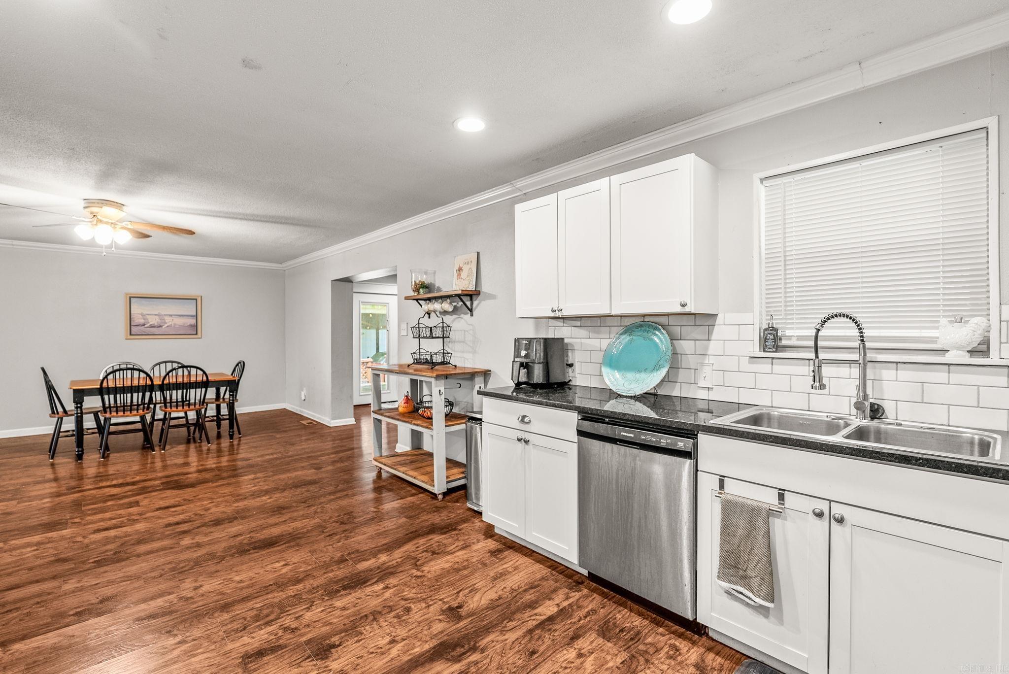This totally remodeled home is move in ready! New granite tops & cabinetry 2019. Wood look laminate floors & refinished wood floors in 3 bedrooms. Metal roof, large deck, huge shop with electricity. Park like setting with large trees & extra landscaping. New HVAC 2025. Chicken coop is negotiable. RD eligible!