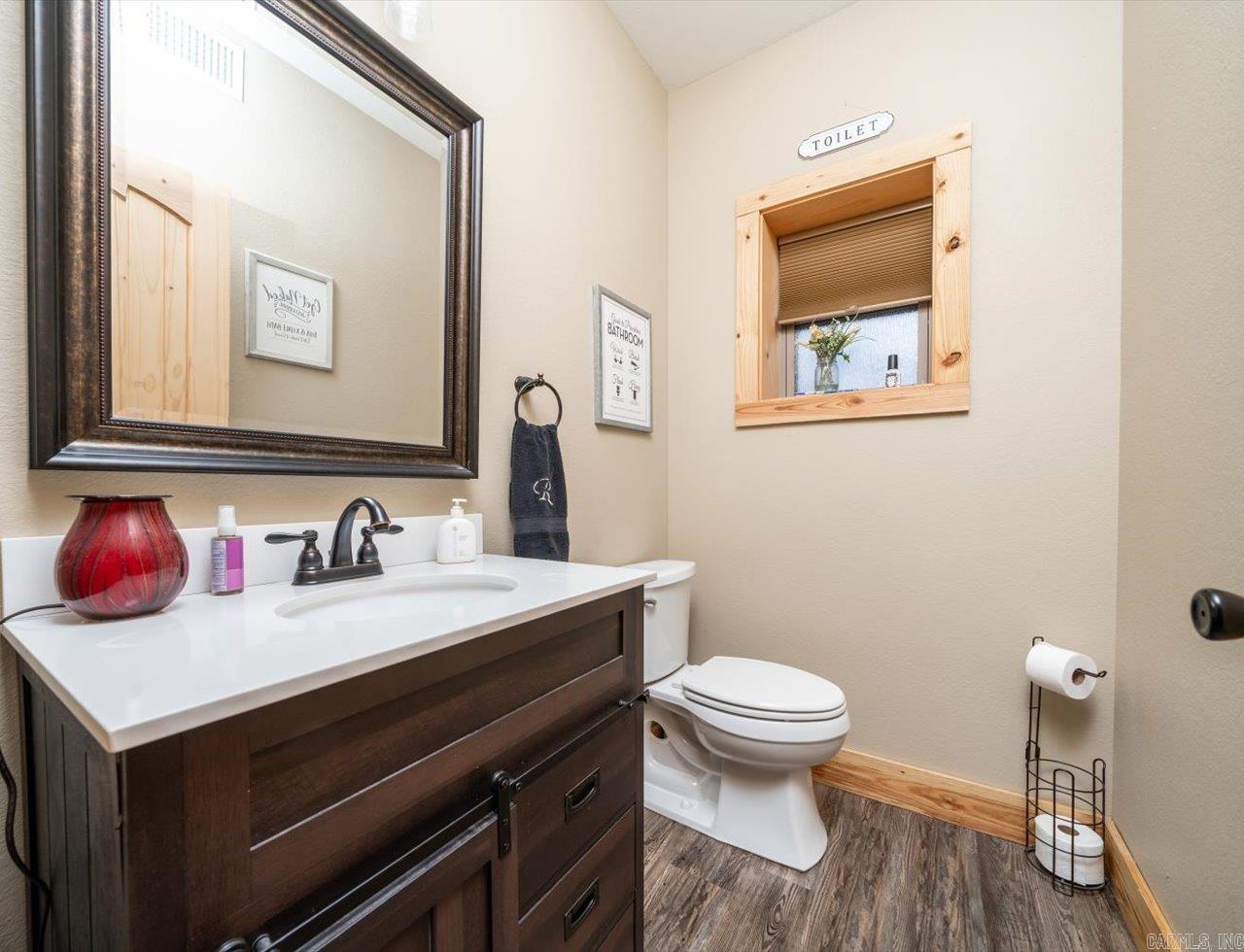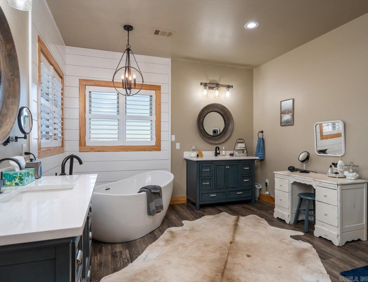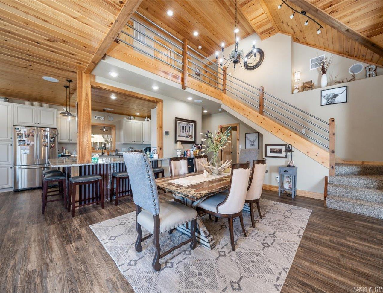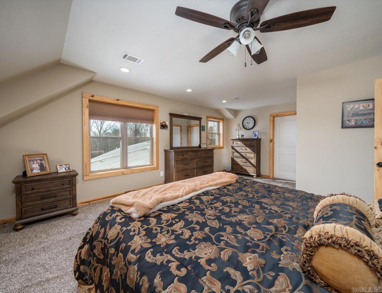 Experience beautiful views and stunning sunsets from the deck or stone patio of this spectacular custom-built home, set on 23+ acres in the Lake Hamilton School District. This impressive 4-bedroom, 4.5-bath home spans approximately 6,079 square feet and is built for both luxury and security with 12" concrete walls, two master suites on the main level, two laundry rooms, and a safe room. Entertain in style with a massive game room, and enjoy the convenience of a 3-car garage, an RV garage totaling approximately 2,761 square feet, and an 894-square-foot heated/cooled workshop. A whole house generator ensures you're always prepared. Located just a 30-minute drive from Oaklawn Racetrack and Lake Ouachita, this property truly has it all. This is the dream home you've been waiting for! Agents - Call Showing service to schedule all showings.