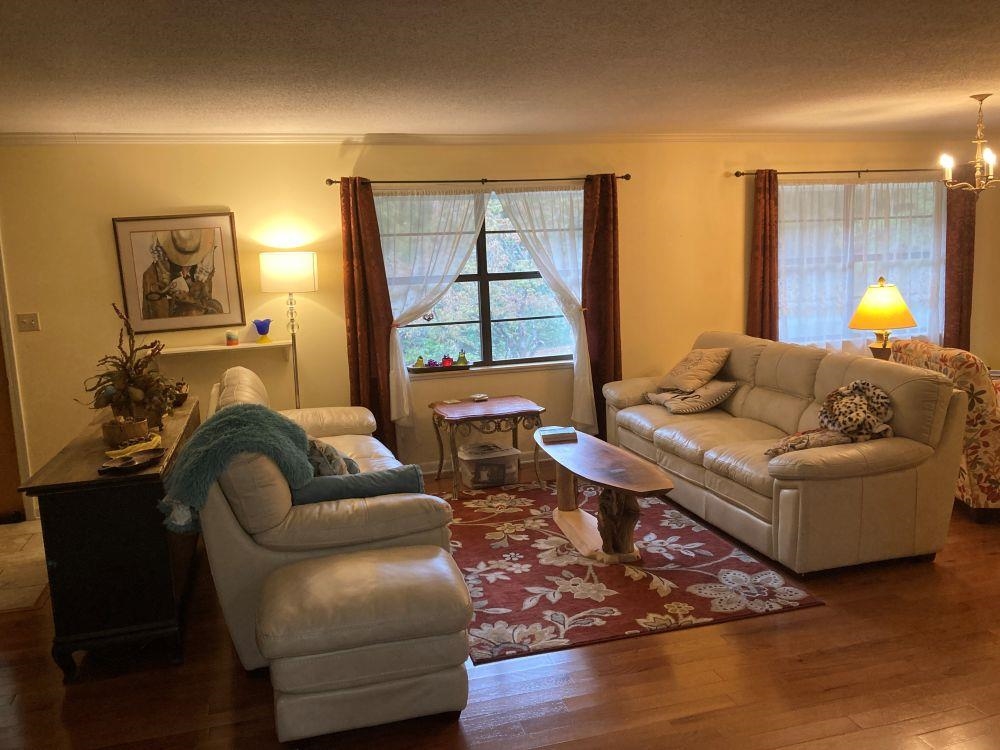 BIG HOME w/24x30 DETACHED GARAGE/WORKSHOP ALL ON 3 SURVEYED LOTS! This 2 bedroom, 2 ½ bath home sits in the heart of Cherokee Village, with attached garage & RV parking with separate driveway. This home has had many updates from NEW ROOF & gutters in 2022 & hardwood flooring. Completely updated kitchen including new flooring & cabinets, granite & butcher block counter tops, gas cook stove & built-in microwave. Attached breakfast area also has new flooring and has lots of windows overlooking the backyard. Primary bedroom & updated bath with tiled walk-in shower has an attached bonus room that could be used for a home gym, hobby room, or home office with a separate entrance to the outside. There is also a large guest bedroom with close proximity to the full hall bath. The huge living room, (appx. 15’x27’) can accommodate about any size family gatherings. There is also a separate Den or dining room with a lovely gas log fireplace that leads out to the back yard and to newly updated back deck & yard with new privacy fence. Tons of storage everywhere.