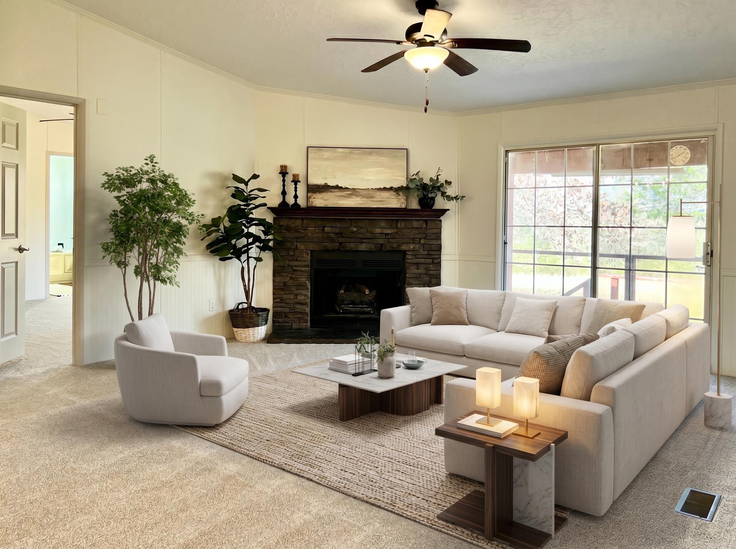 Nestled on 4 beautiful acres, this refreshed 3 bed, 2 bath mobile home offers comfort, charm, and room to roam. The home features a spacious refreshed kitchen with a butcherblock topped island and re-surfaced countertops as well as upgraded appliances, a cozy fireplace, and a mudroom/pantry for added convenience. A brand new HVAC has been installed as well as new carpet and fresh paint throughout for added comfort and ease. All outlets have been upgraded throughout the home as well. An attached workshop with full electric provides excellent space for projects or storage. Outside, you'll find a partially covered back deck perfect for enjoying the peaceful scenery. Dreaming of a hobby farm? This is what you've been looking for! Recent survey already on file.