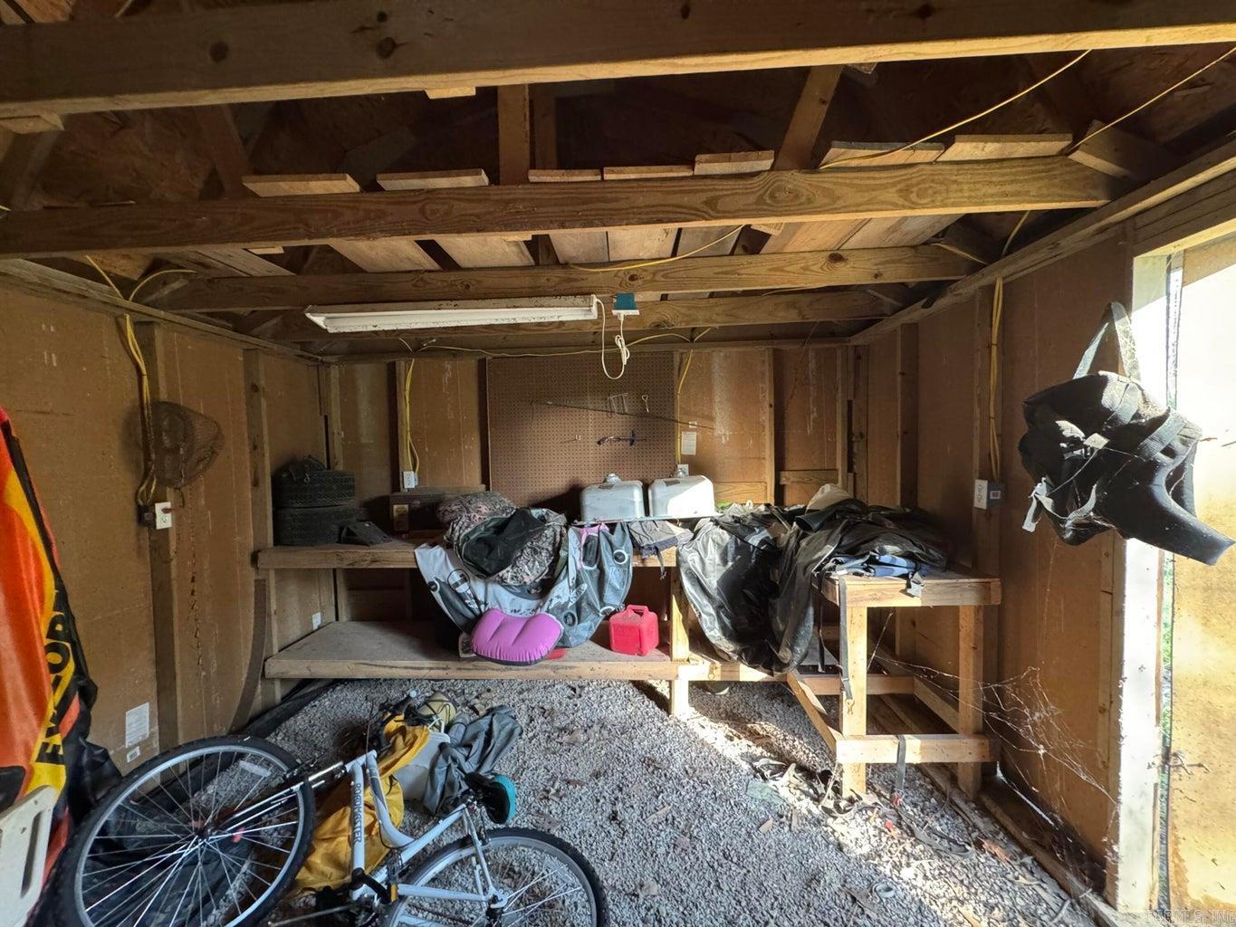 Welcome home to this charming 2-bedroom, 1.5-bath property situated on a spacious corner lot that spans two lots, offering extra room to spread out and enjoy. Inside, you'll find a warm and inviting layout featuring a cozy wood-burning fireplace--perfect for relaxing evenings. The home boasts easy-to-maintain flooring throughout with no carpet, making cleaning a breeze. The kitchen opens to a large back deck, creating an ideal space for entertaining, grilling, or simply enjoying the outdoors. Step outside and take advantage of the expansive yard with plenty of space for gardening, pets, or future possibilities. In addition to the home, the property includes a detached shop with a lean-to, providing excellent storage, workspace, or room for hobbies and equipment.