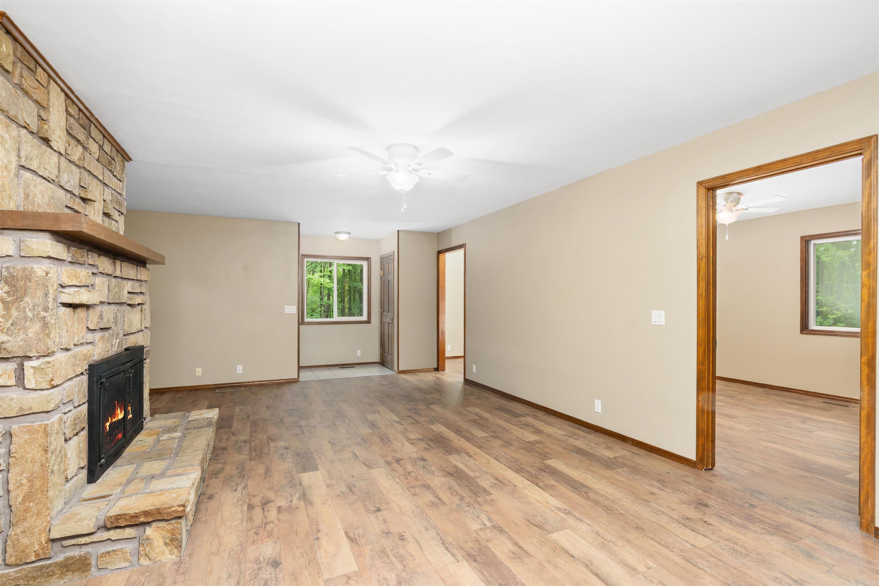 Gorgeous and UPDATED in every way! NEW floors, NEW roof, NEW paint, NEW fans! This level driveway and quiet street make this home fabulous! Besides the 2 bedrooms, there is an Arkansas room AND an office giving you room to spread out and make this home your own! HUGE walk in closet in primary bedroom. NEW stove. Gas fireplace with full propane tanks ready for cooler temps! Must see to believe....won't last long! Comes with washer and dryer and refrigerator. Check out the property disclosure to see how much has been updated!